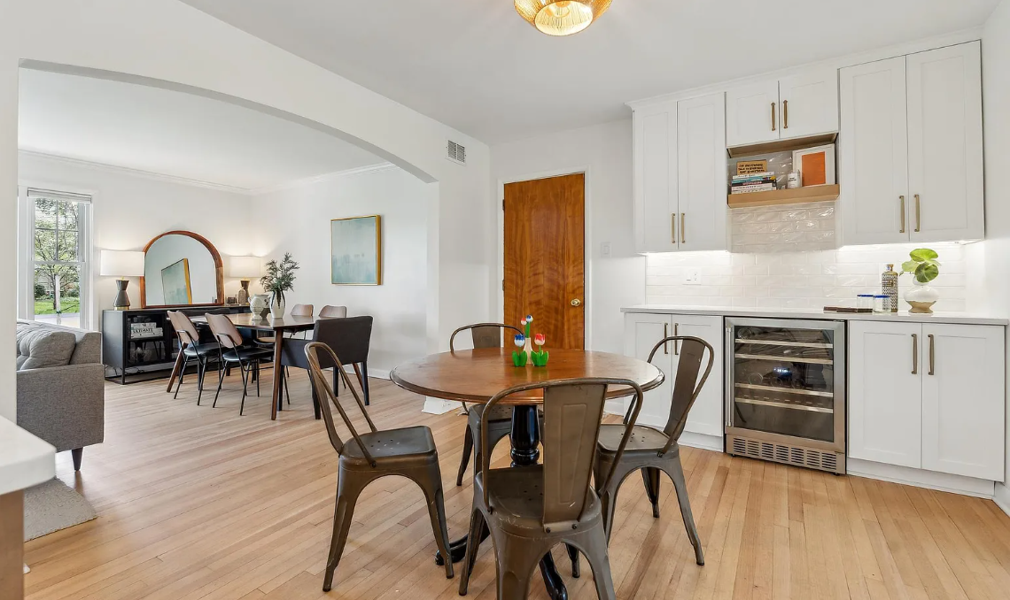 Our clients first discovered us after visiting several other local showrooms, ultimately choosing our team to bring their vision to life. The original scope included a full renovation of the kitchen, dining room, and powder room. As the design and the pricing process unfolded, the project expanded to include new hardwood floors and a refreshed fireplace.